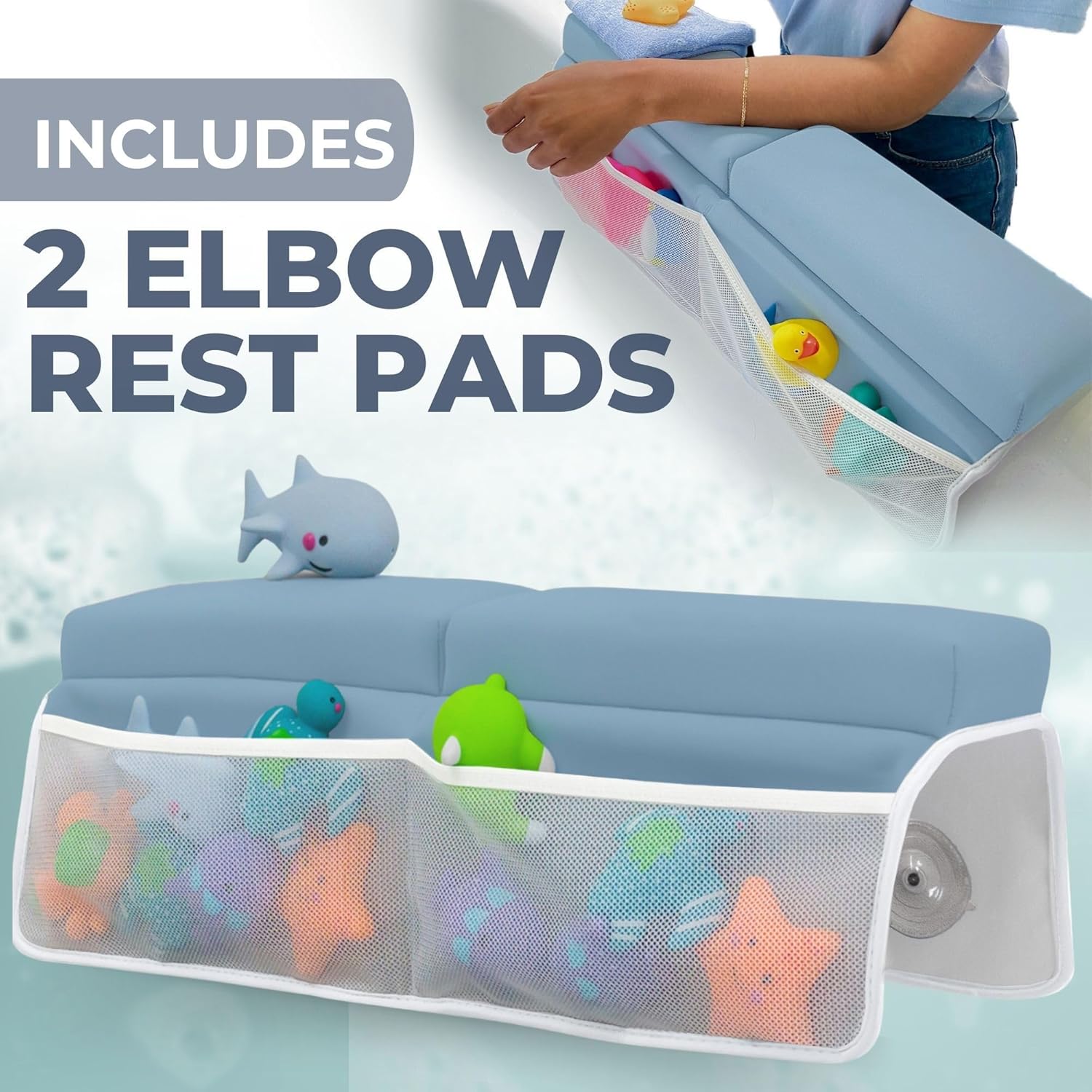 Comfortable Baby Bath Kneeler and Elbow Rest Pad Set – Thick Memory Foam Bath Kneeling Pad with Elbow Support – Baby Bathtub Cushion with Toy Organizer for Bathing Infant or Toddler - Blue