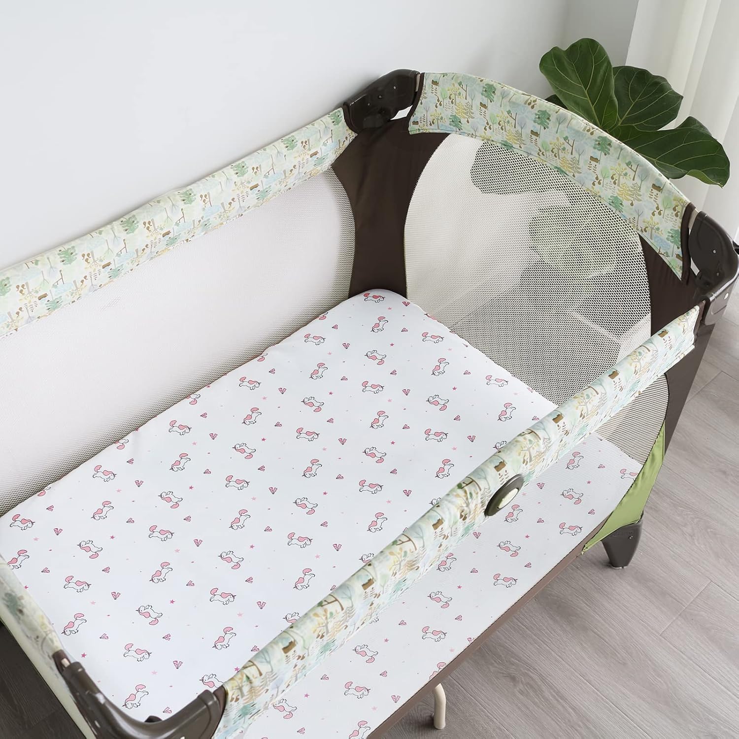 - Super Soft & Quantity Options: These pack and play sheets have been carefully selected to be soft and breathable. No matter boy or girl, you can always find the best choice to match your playard bedding. We offer whales, dinosaurs, ocean, pink, white, gray, aqua cute print. True to color. True to size.