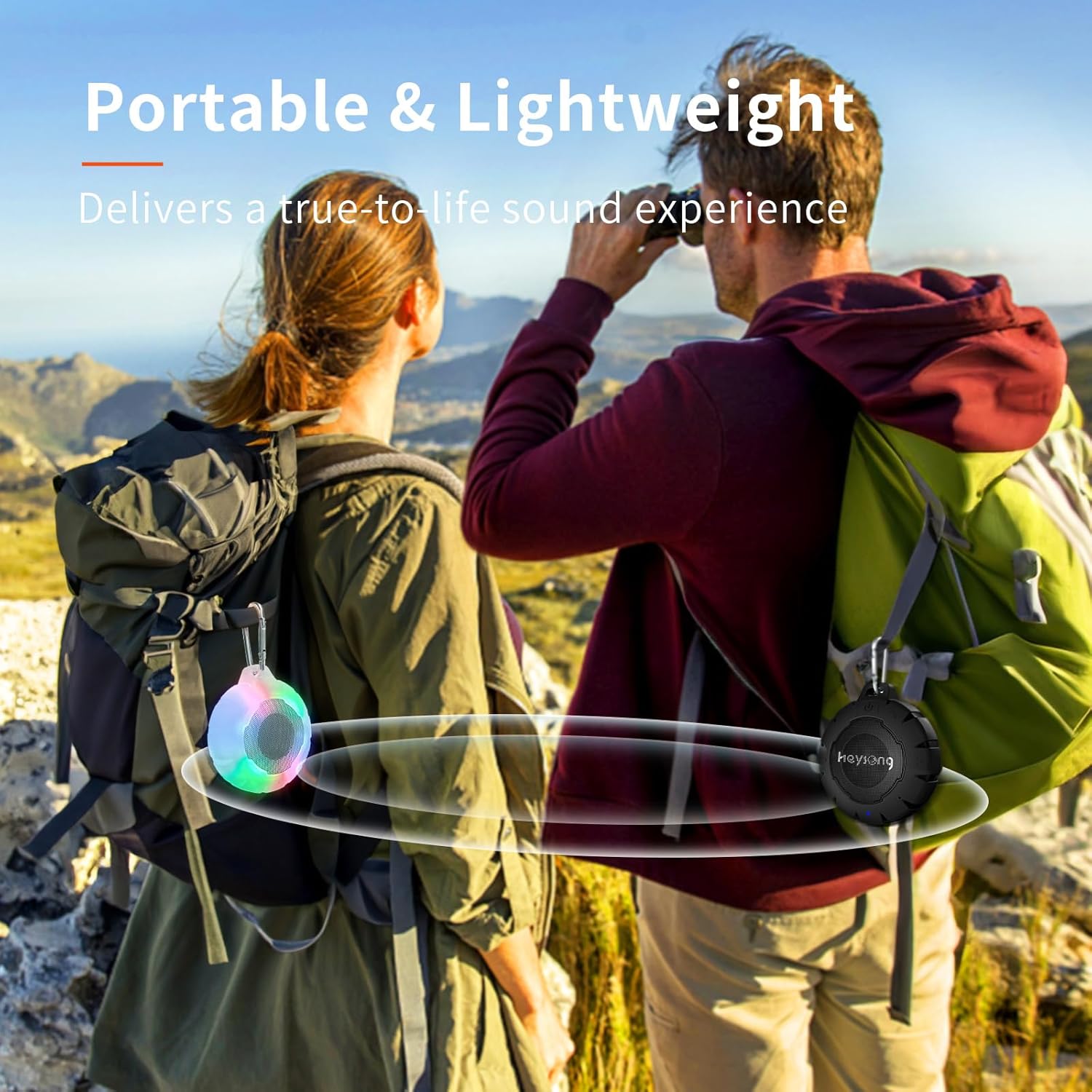 - Portable & Adventure-Friendly: Designed for outdoor fun, this compact speaker includes a carabiner for easy carrying. Perfect for beach outings, kayaking, camping, or poolside relaxation.