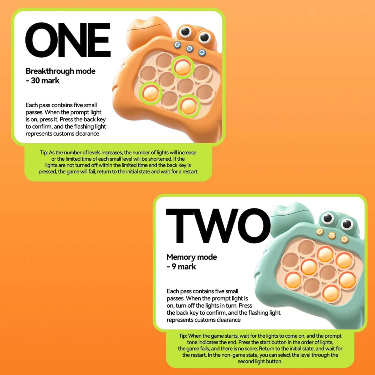 - 🎮 Designed for Kids and Adults of All Skills - Searching for the ultimate gift for your child or a young family member? Look no further than the pop fidget game. Specifically designed to stimulate children's minds and improve their motor skills, this pop fidget game machine is a fantastic way to encourage learning through play.