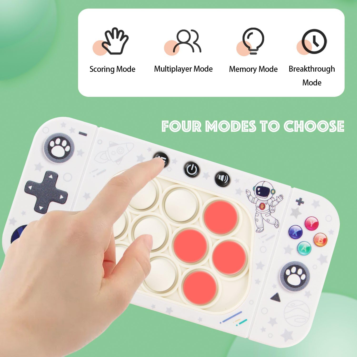 • 🎮 Designed for Kids and Adults of All Skills - Searching for the ultimate gift for your child or a young family member? Look no further than the pop fidget game. Specifically designed to stimulate children's minds and improve their motor skills, this pop fidget game machine is a fantastic way to encourage learning through play.