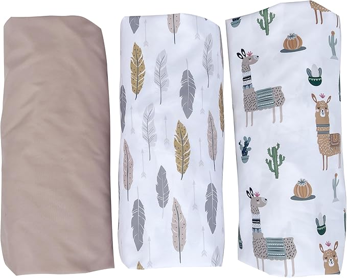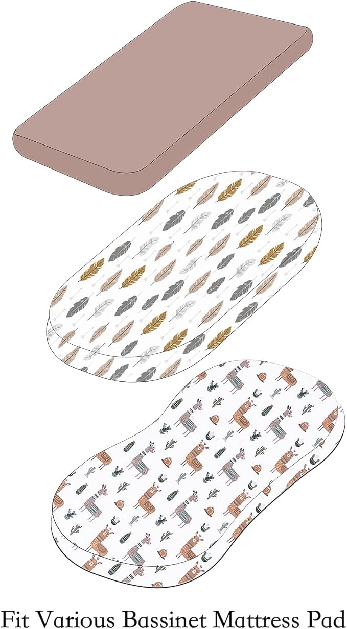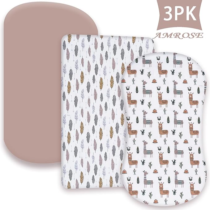 AMROSE 3 Pack Heavenly Soft Bassinet Sheets for Baby Universal Fitted for Various Cradle and Bassinet Mattress Pad, Silk Touch Gentle Breathable Microfiber, Alpaca & Feather