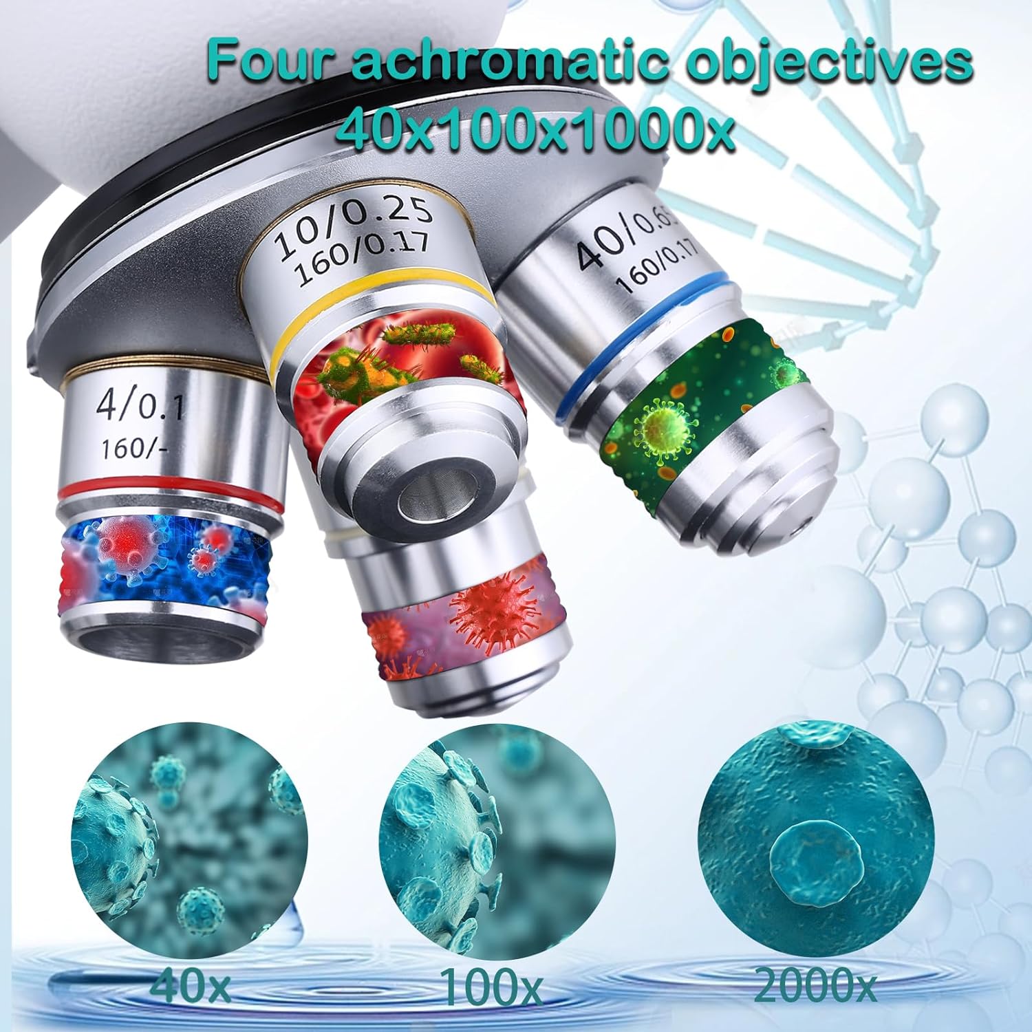 Compound Microscope,40X-2500X Research Class Professional Microscope,WF10x and WF25x eyepieces, Dual LED Lighting and Two-Layer Mechanical Stage,Microscope for Adults…