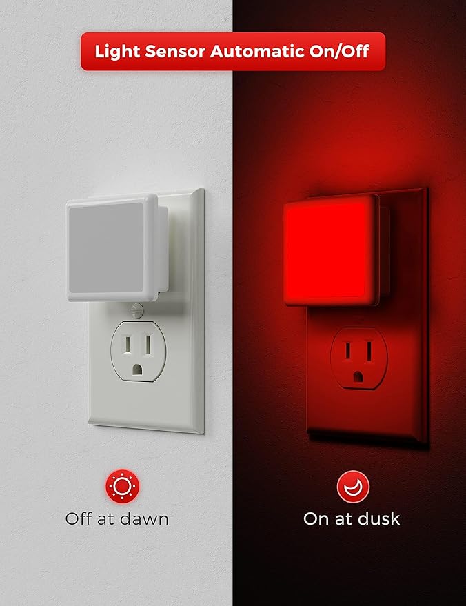 - High performance--It will light up instantly with red light when you plug in this led night light. No buzzing and flicker but the plug in night light will give off comfortable light without harsh glares, bring a cozy environment for your space. No warm-up time required.