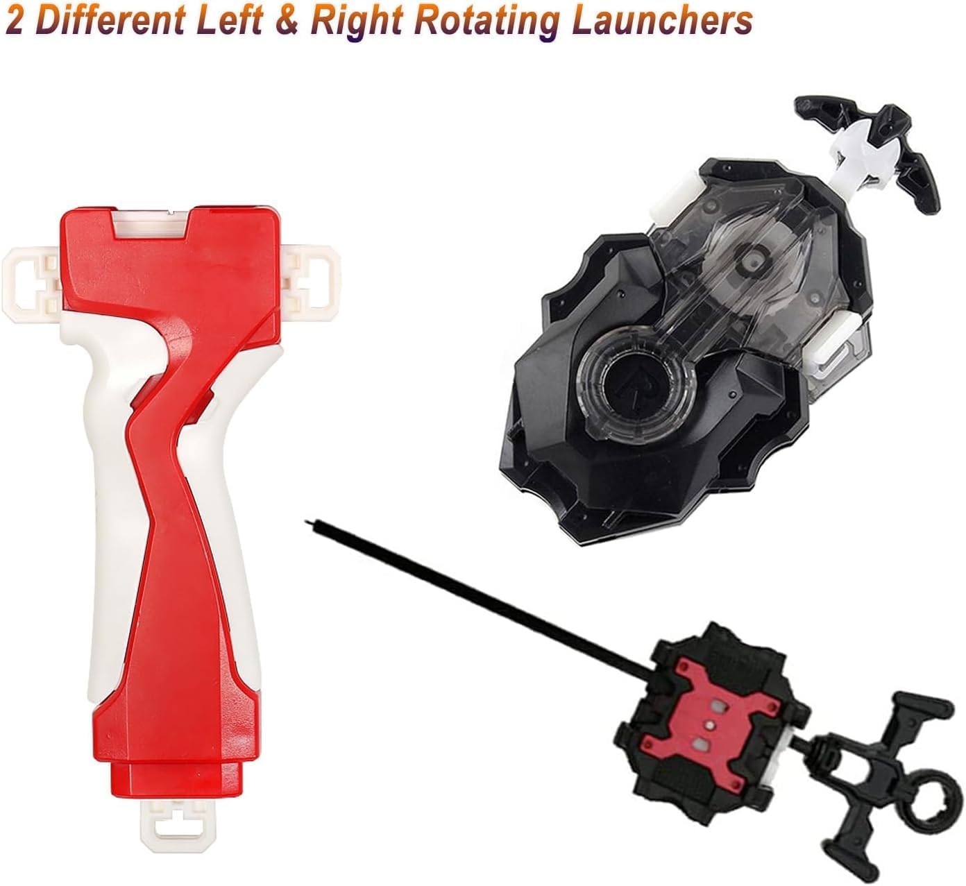 - 【Package Including】- This stadium battling top set comes with 4 x Spinning Tops(B189 B191 B192 B193),4 x Sets of Stickers,2 x Launchers,1 x Grip,1 x Arena Combat Game. (Make it look even cooler with the complimentary stickers!)