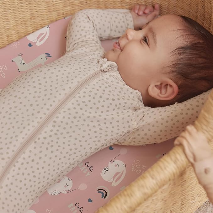 - BREATHABLE & COMFORTABLE BASSINET SHEETS:Crafted with breathable fabric, these bassinet sheets help regulate your little one’s temperature, keeping them cool in summer and warm in winter. Perfect for nurseries, daycares, or home use, these bassinet sheets ensure a comfortable sleep surface for your baby.