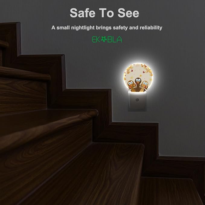 EKOBLA Thanksgiving Day Turkey Nightlight Autumn Red Maple Leaf LED Night Light Plug into Wall with Dusk to Dawn Light Sensor for Bedroom Living Room Kitchen