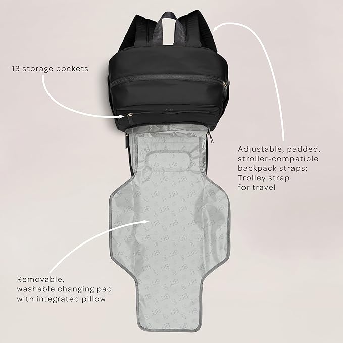 JuJuBe JJB New Deluxe Diaper Bag Backpack with Portable Changing Pad, Stroller Straps, Large Travel Backpack for Boy or Girl, Carrying Baby Bottles, Diapers, Pacifiers, Black, Mother's Day Gift