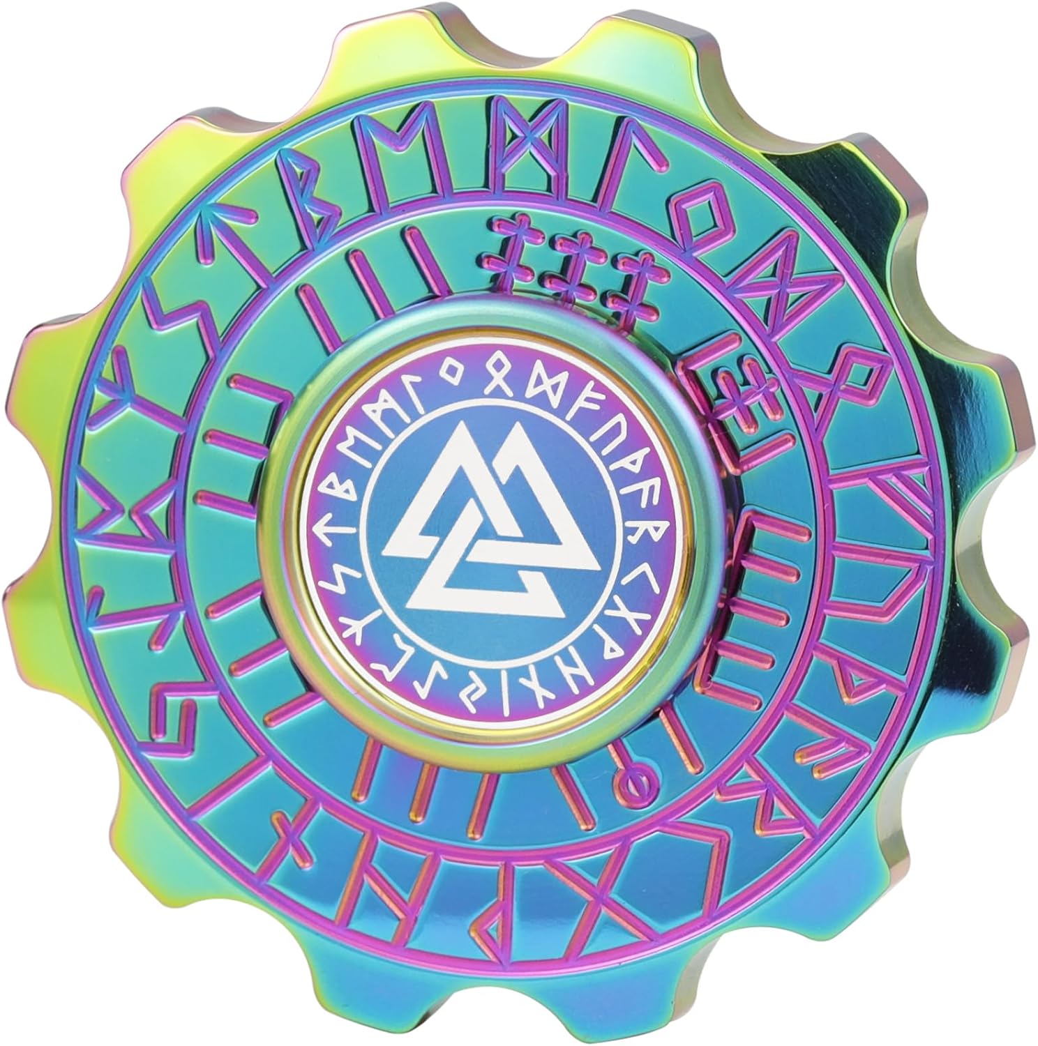 - [Good Looking] Viking Pirate Fidget Spinner design from Viking Pirate culture. Each side engravings with symbols or numbers, you could utilize it for memory practice, a random number generator, and something that could serve as a coin flip or dice roll outcome. Fingertips are cool lasered with mysterious symbols. It's visually appealing for sure.