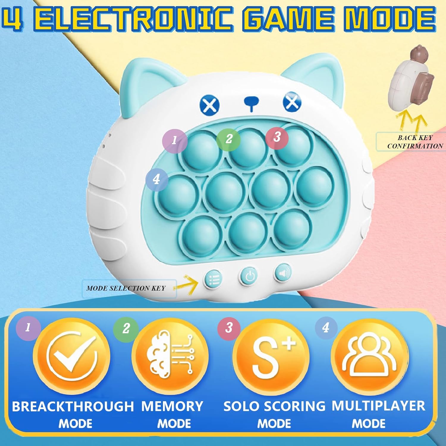 - 🎮【4 Different Game Modes】The Pushing bubble electronic games including solo Scoring mode and multiplayer mode - Support Timed Challenge/level PK and Multiplayer competition.Breakthrough Mode and Memory Mode - Remember the randomly lit bubbles and press them quickly and correctly to get through each level.If you press the wrong one, it will lead to the end of the game. Each mode has different difficulty levels,it makes the game more interesting.