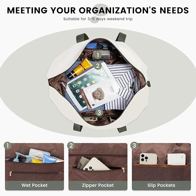 • 【Organized Packing】: Featuring multiple compartments and pockets, this weekender bag ensures your belongings stay organized, making it easy for you to find what you need quickly and efficiently