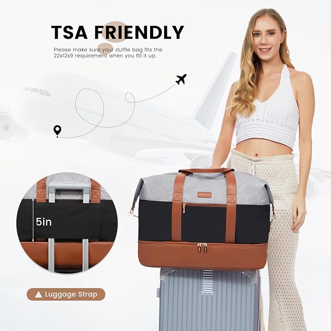 - 【Comfortable to Carry】: With sturdy handles and a removable, adjustable strap, this weekender bag offers various comfortable carrying options, enhancing your overall travel experience