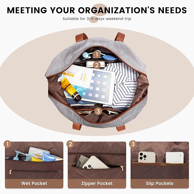 - 【Organized Packing】: Featuring multiple compartments and pockets, this weekender bag ensures your belongings stay organized, making it easy for you to find what you need quickly and efficiently