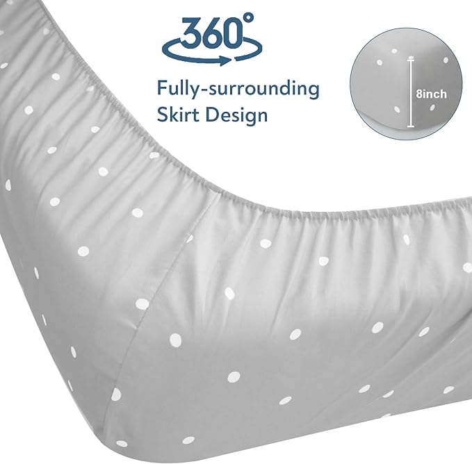 - Fitted Sheet : Measures 52”X 28”, our crib sheets can snug fit most standard crib and toddler bed mattresses. The deep pocket skirt stretches up to fit 8 inches deep mattress, provides a safe and secure 360 degree coverage and protection for your mattress.