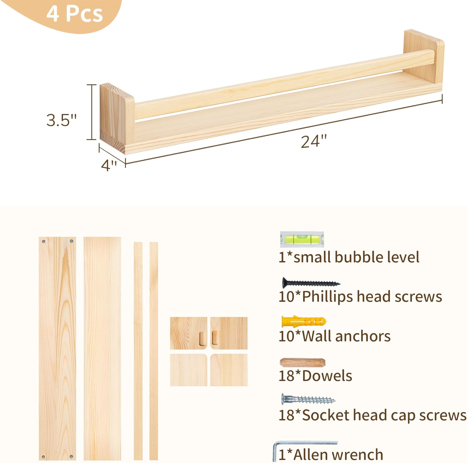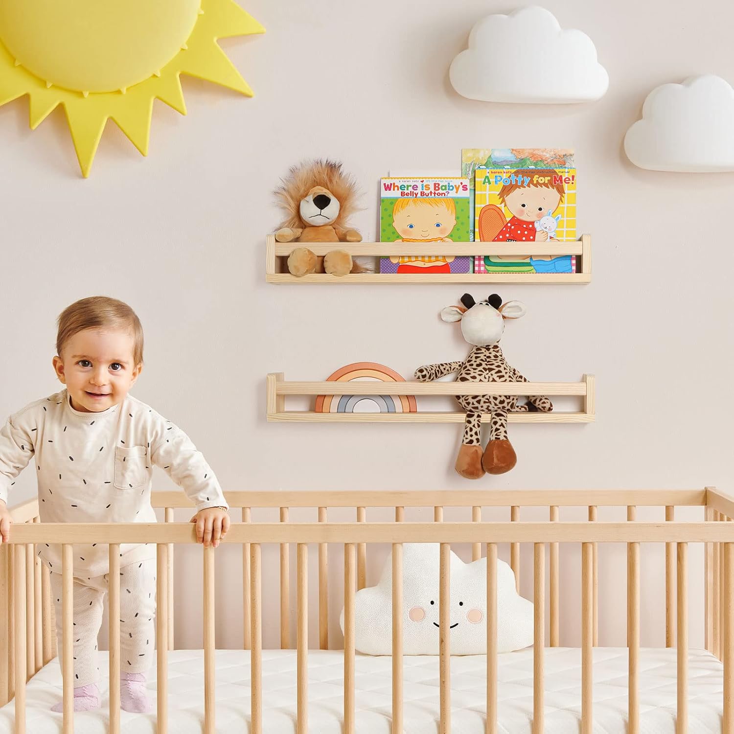 - Durable & High-Quality: Made of solid pine wood, these floating shelves are built to last. They'll provide a stylish and practical storage solution for years to come, making them an excellent addition to nursery decor and any room throughout your home