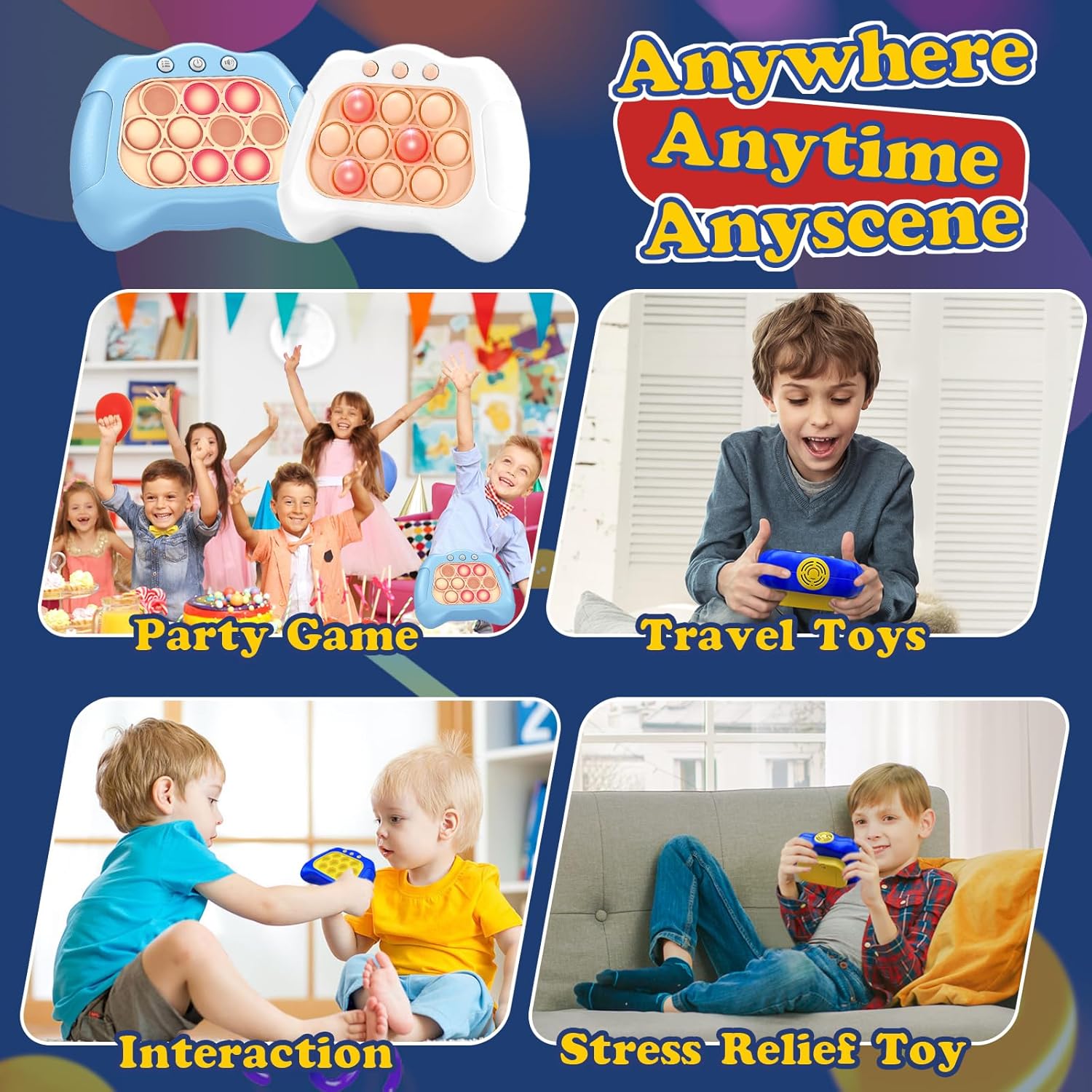 - 【Upgraded Quick Push Pop Game】-- If you are looking for an entertaining way to pass times for kids, check out our pop pro light up games. Compare to addictive classic press bubble game handheld, our fast push bubble games make kids engaged in positive thinking, hand-eye coordination, and brain training during playing challenges filled with lights and sounds, promoting kid’s sensory development, improving reaction ability, memory, and logical thinking skills in a fun way.