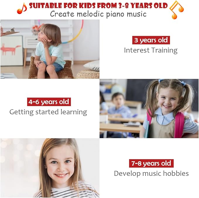 - 【Wonderful Piano Experience】Featuring 30 keys with appropriate sizes and 0.8” key height, this classical kids piano will make your little one play more intently and immersed in the elegant melody. The key size is suitable for kid’s fingers, and each key is effortless to press.