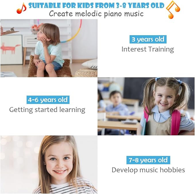 - 【Ideal Gift for Your Little One】This kids piano and stool set will be a perfect gift for kids of 3-8 years old. It will be effective in inspiring musical potential, promoting sound discrimination, improving hand-eye coordination and reducing screen time. Moreover, the piano has gained ASTM and CPSIA certification.