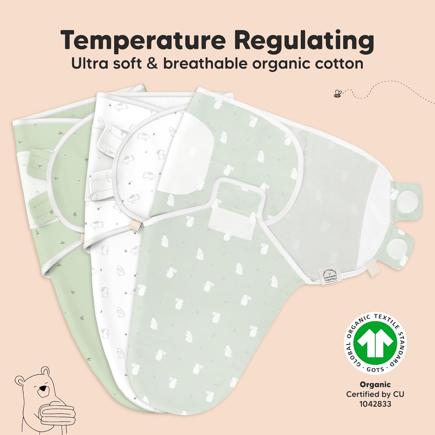 3-Pack Organic Baby Swaddle Sleep Sacks - Swaddles for Newborns, Infant 3-6 Months, Baby Girls, Boys, Soft & Snug Newborn Sleep Sack, Nursery Swaddling Blankets (Bunnies, L)