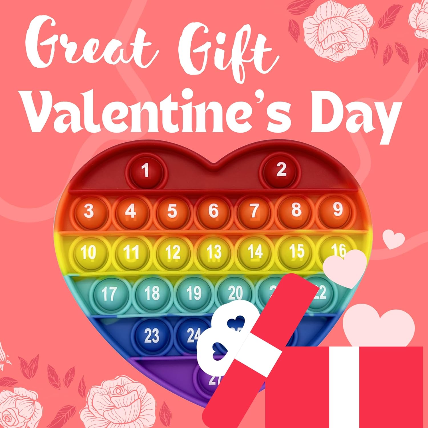 - 💖💖💖【Pink Heart-Shaped Pop Bubble Valentines Fidget Toy】 This Valentines Day gift is designed in the shape of a red heart, making it a cute and romantic addition to any romantic occasion. It features a pop bubble function that creates a satisfying popping sound when pressed, providing a soothing and relaxing experience.