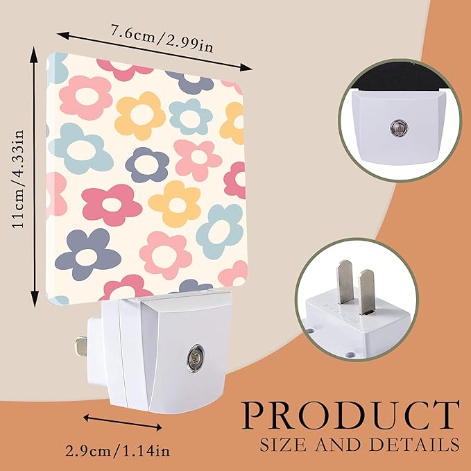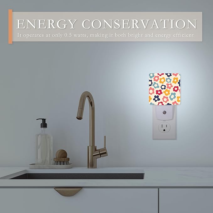 Vintage Groovy Flowers Night Light with Dusk to Dawn Sensor for Kid Girls Boys Women Men Room Decor, Hallway, Kitchen, Bathroom, Nursery, Stairs