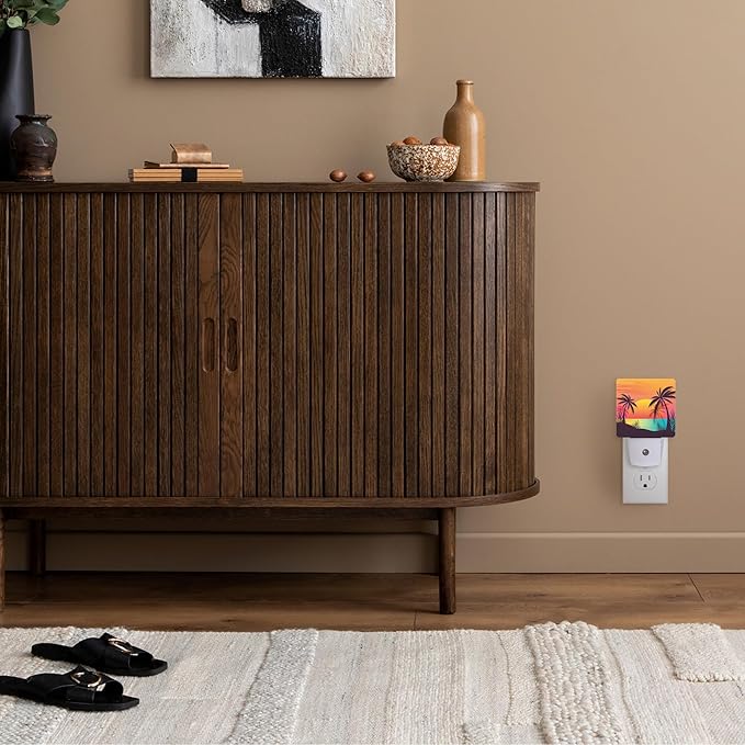 Night Light,Palm Tree with Beach Sunset Night Lights Plug into Wall for Boys Girls Bedroom Decorative Half Round Nightlight Led Lamp 0.5W Sleep Friendly