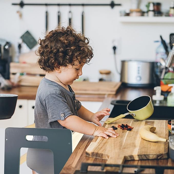 - Design in the US: We have specially designed three different contrasting styles of toddler step towers for various decoration styles so that you can have a more suitable choice. And the equipped anti-slip mat will not scratch your floor. Balance boards on both sides ensure the stability of the entire kitchen stool