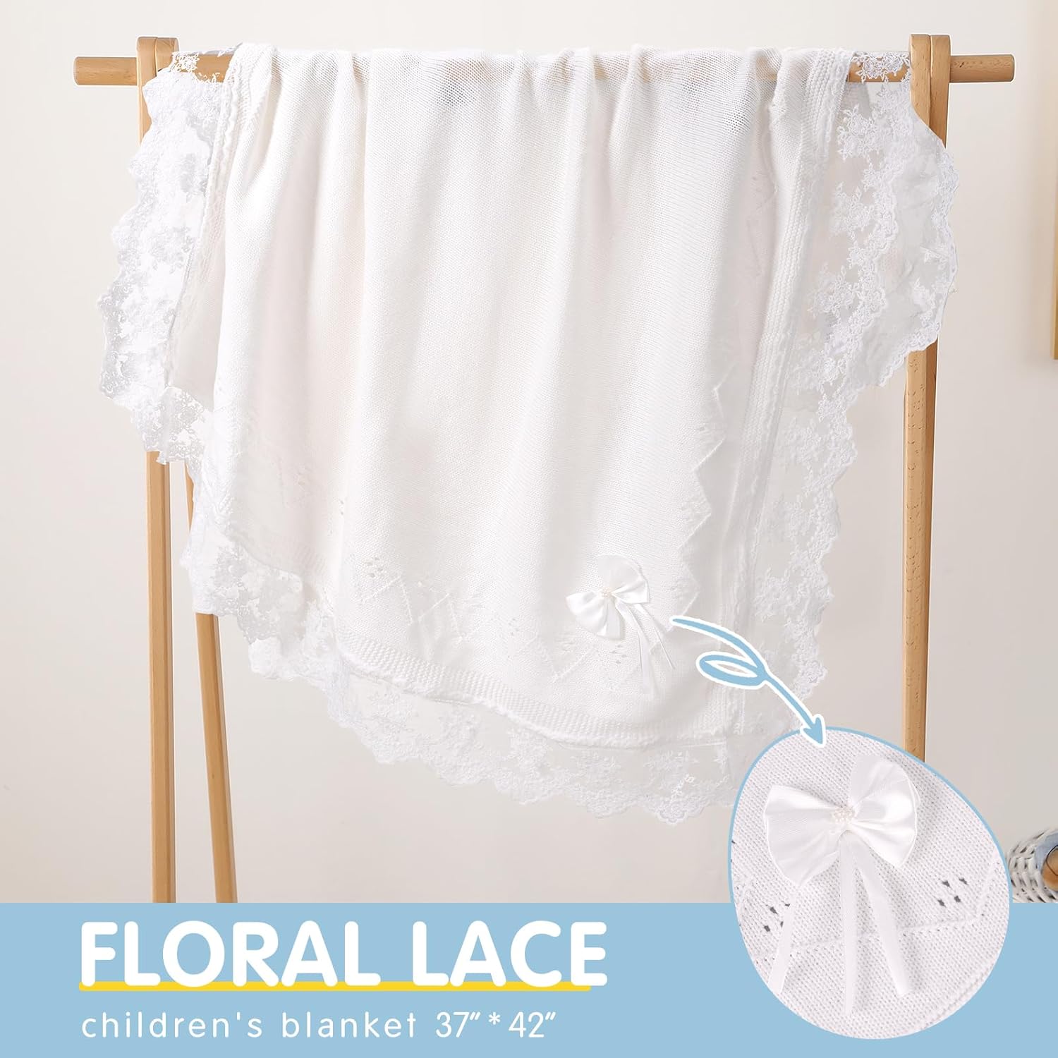 - Wrap your little one in the softest comfort with Booulfi white Baby Blankets. These cotton baby swaddle blanket are perfect for newborns, featuring a cozy knit design and lace for a more unique and elegant look.