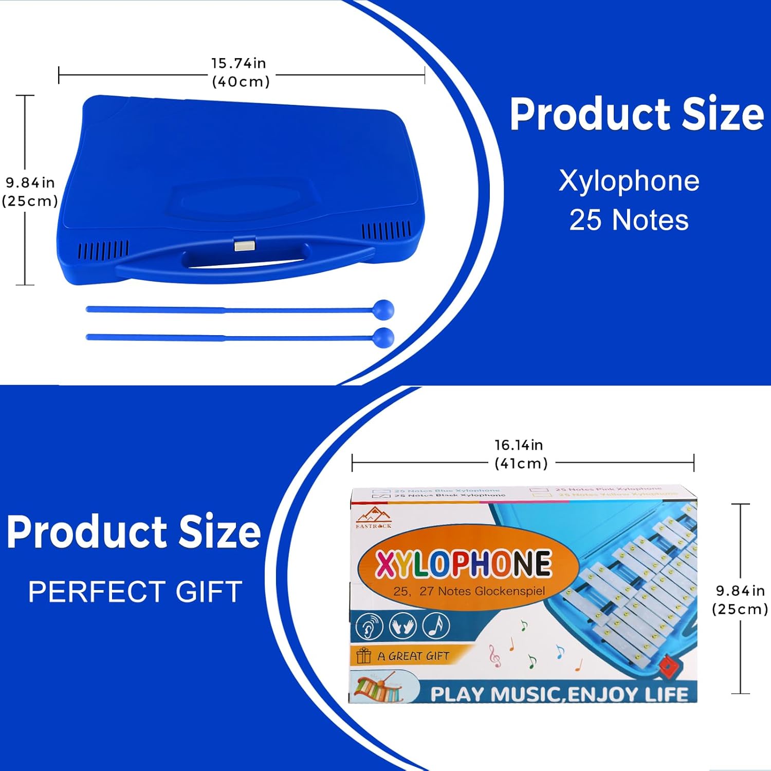 EASTROCK Xylophone, 25 Notes Glockenspiel Xylophone for Kids, Professional Xylophone Instrument Music Teaching, Gifts, JDXPE-25NC-DBL