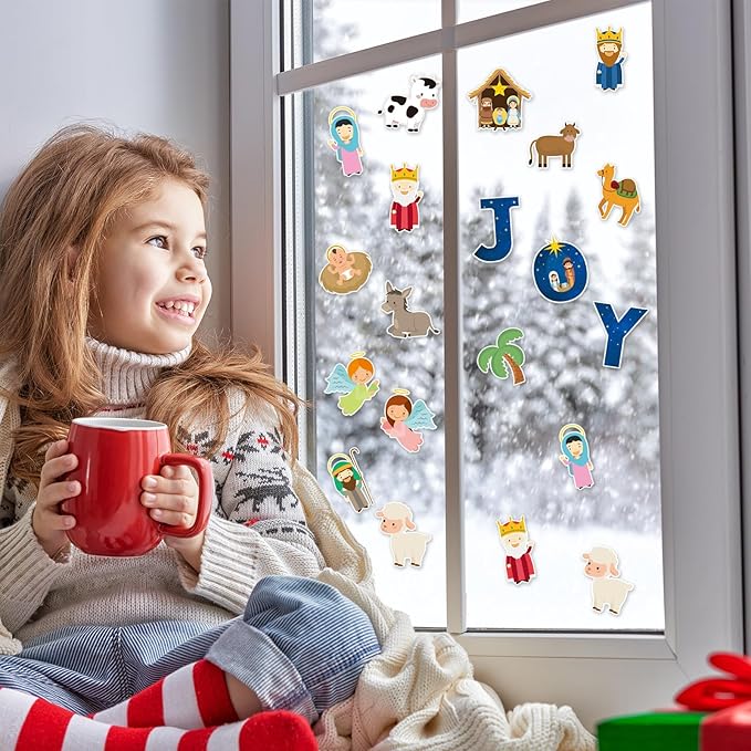 - What you will get: You will get 20 pcs Christmas gel stickers with 20 different Christmas nativity patterns, providing vivid designs for your home window decorations, these cute Christmas stickers can expand your children's imagination.