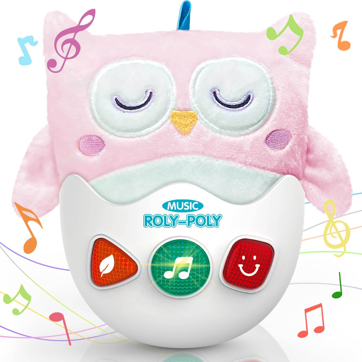 Baby Toys 0-6-12 Months, Plush Owl Stuffed Animal Musical Toys with Light & Sounds, Infant Roly-Poly Sensory Birthday Easter Egg Gift for Newborn Boys & Girls
