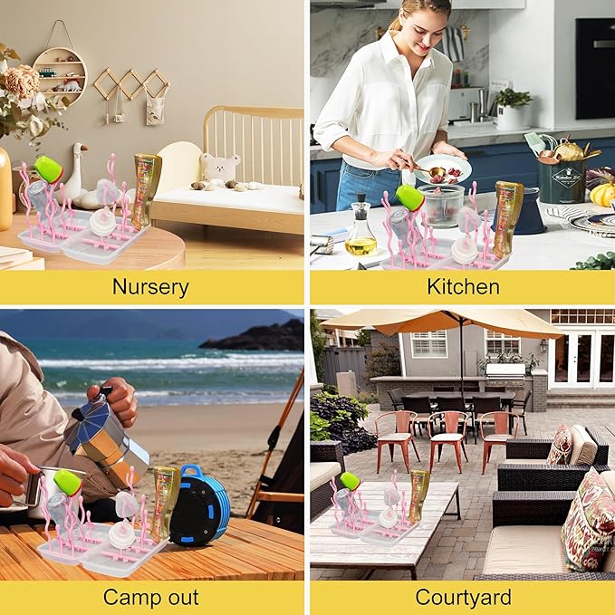 - 【Large capacity】This travel drying rack for baby bottles can hold up to 12 bottles / pacifiers