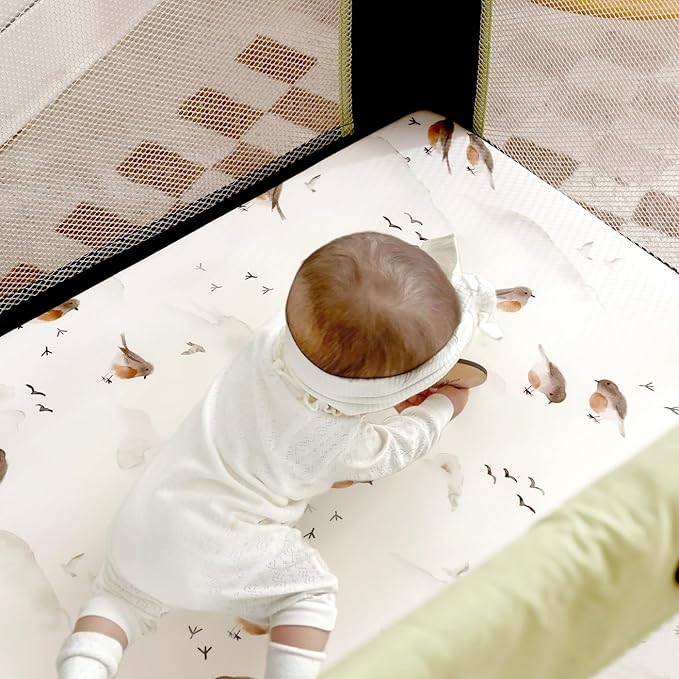 - Apple It Within Seconds: Thanks to the elastic bottom, our pack n play sheets come in a classic, cute watercolor cows and birds print that will put the finishing touches to any bedding. Make sure to give your darling a serene and calm bed to rest in.