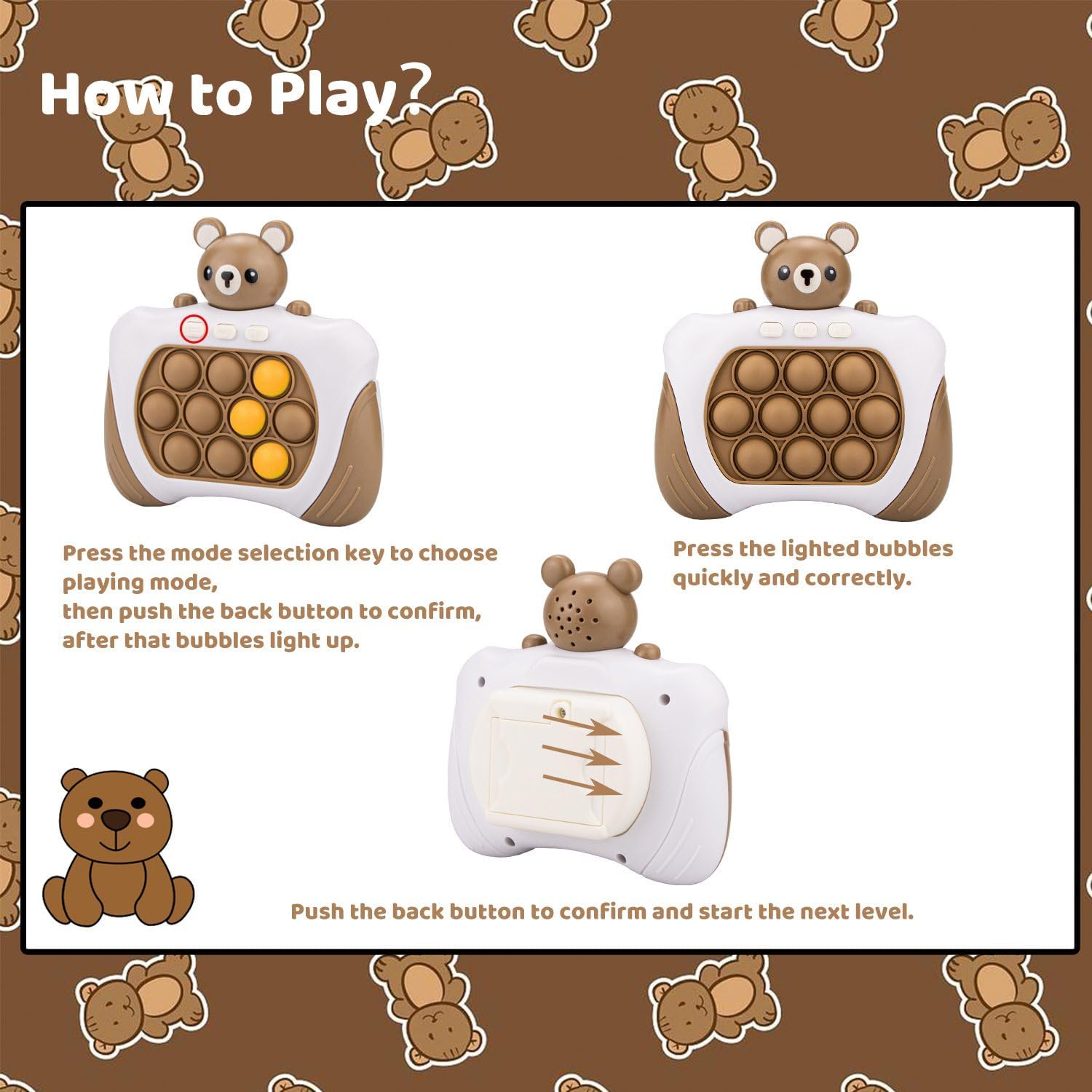 - 🎮 Designed for Kids and Adults of All Skills - Searching for the ultimate gift for your child or a young family member? Look no further than the pop fidget game. Specifically designed to stimulate children's minds and improve their motor skills, this pop fidget game machine is a fantastic way to encourage learning through play.