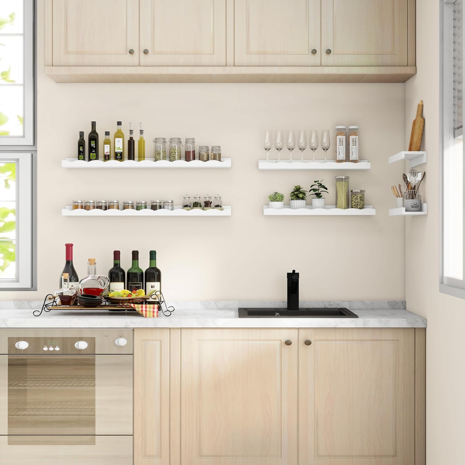 - 【Picture Ledge Shelves】With its effective wave design, these shelves reliably prevent items from falling off, providing a secure storage solution. You can easily organize your home space by placing picture frames, small plants, photo frames, books, toilet paper, bath towels, or decorations on these versatile shelves.