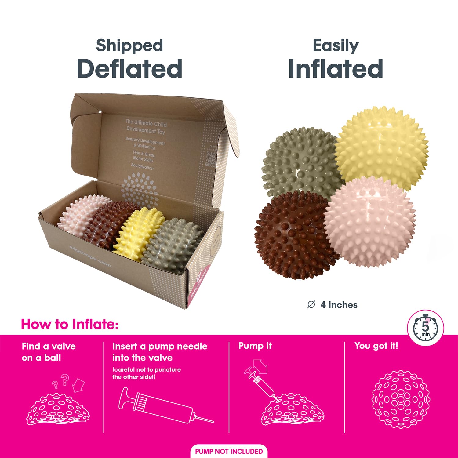 - WHAT'S INSIDE: A set includes a set of 4" Boho Chic-Deflated sensory ball for toddlers 1-3. Our baby development balls come deflated but can be easily inflated via a built-in valve. Recommended for kids aged 6 months and up!
