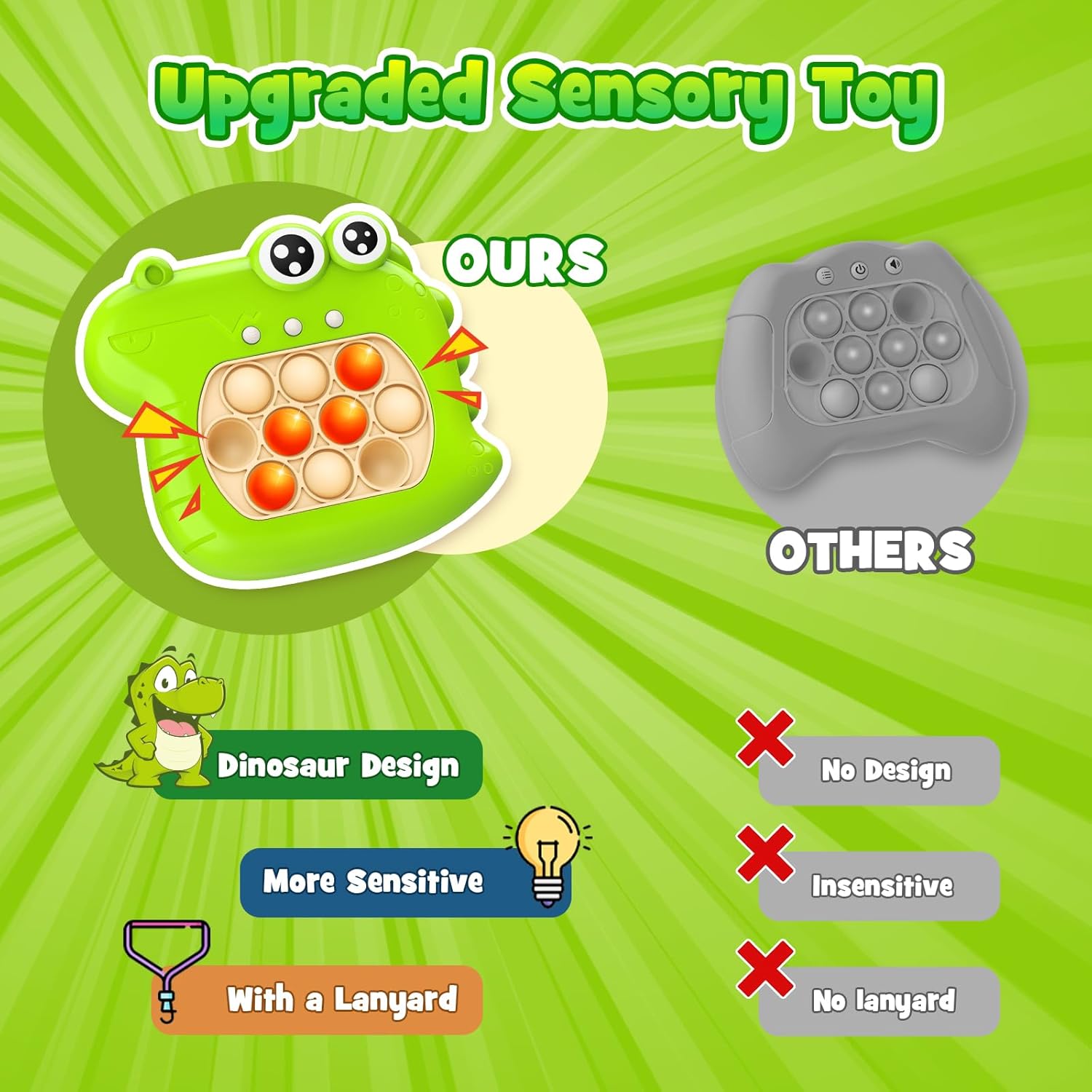 - 🎮【FUN HANDHELD GAME】: Enhance kids reaction speed and cognitive skills with our mini handheld game! Let your kids develop quick thinking and hand-eye coordination while having fun with the addictive bubble stress game.