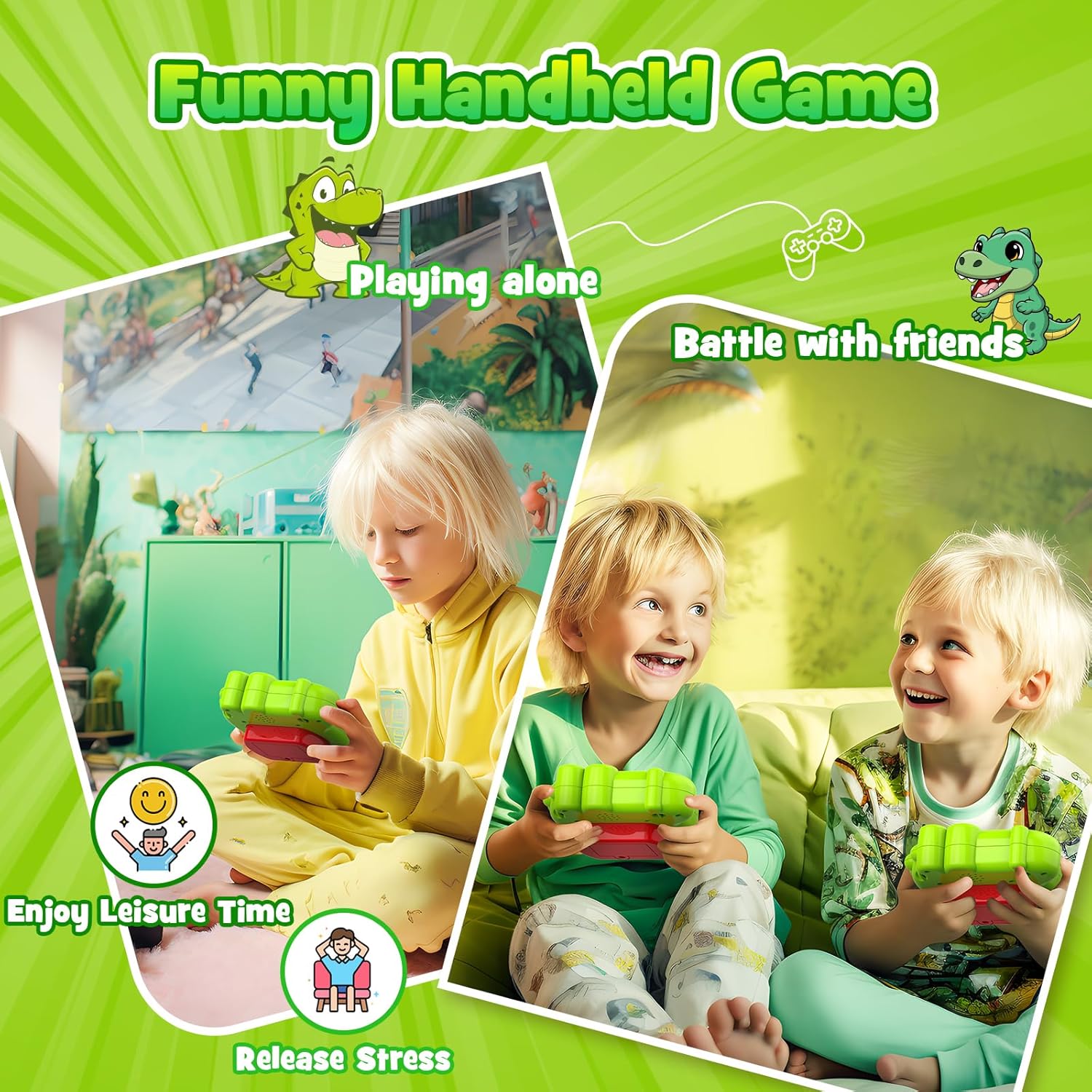 - 👍【HIGH QUALITY TOY】: Crafted from high-quality ABS and silicone, our game console is enduring and ergonomic, which is 50% more sensitive to stress than others. It's very easy to play and won't hurt your hands when pressed.