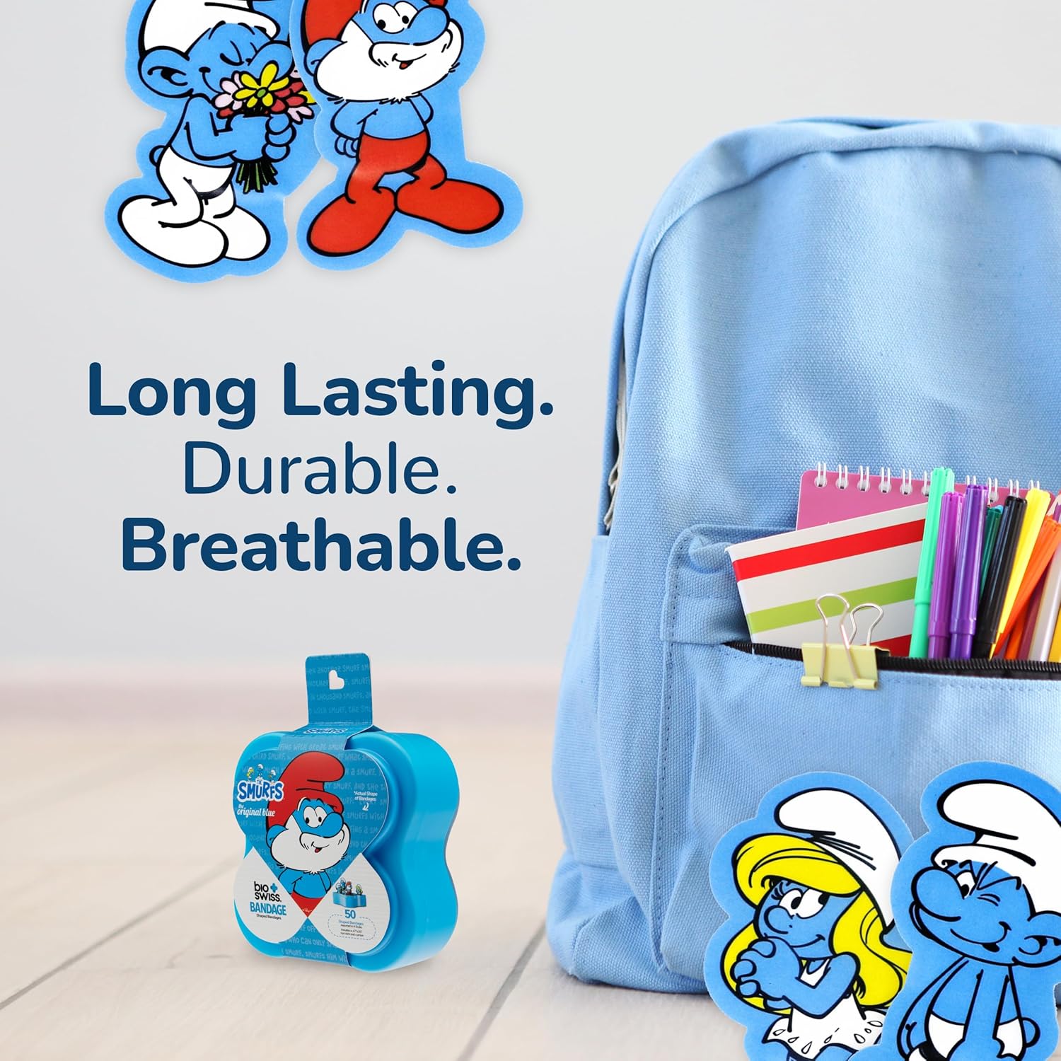 - EASY TO CARRY AND USE: These cute and colorful Smurfs children's bandages are easy to take with you for travel, and easy to store in a home first aid kit; these healing bandages are perfect for school, summer camp, camping trips, weekend getaways and more