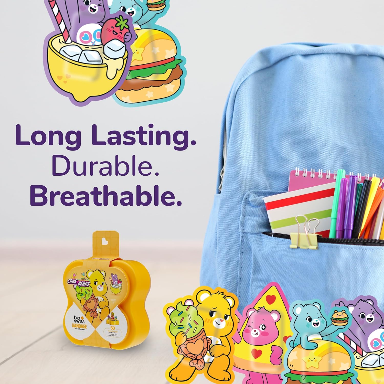 BioSwiss Care Bears Bandages, Sweet and Sour Care Bear Shaped Self Adhesive Bandage, Latex Free Sterile Wound Care, Fun First Aid Kit Supplies for Kids, 50 Count