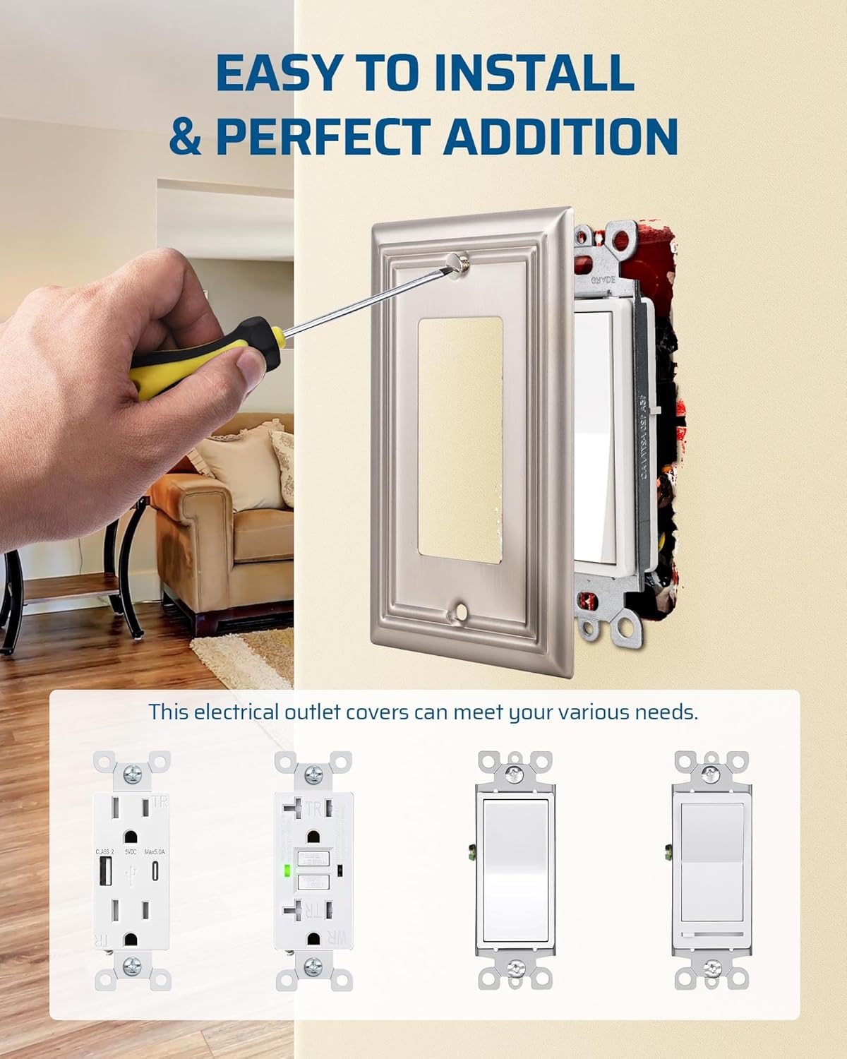 - [Versatile and Useful] Widely used in different types of duplex receptacles, our metal switch plate covers also suit for dimmers, switches, outlets, etc.