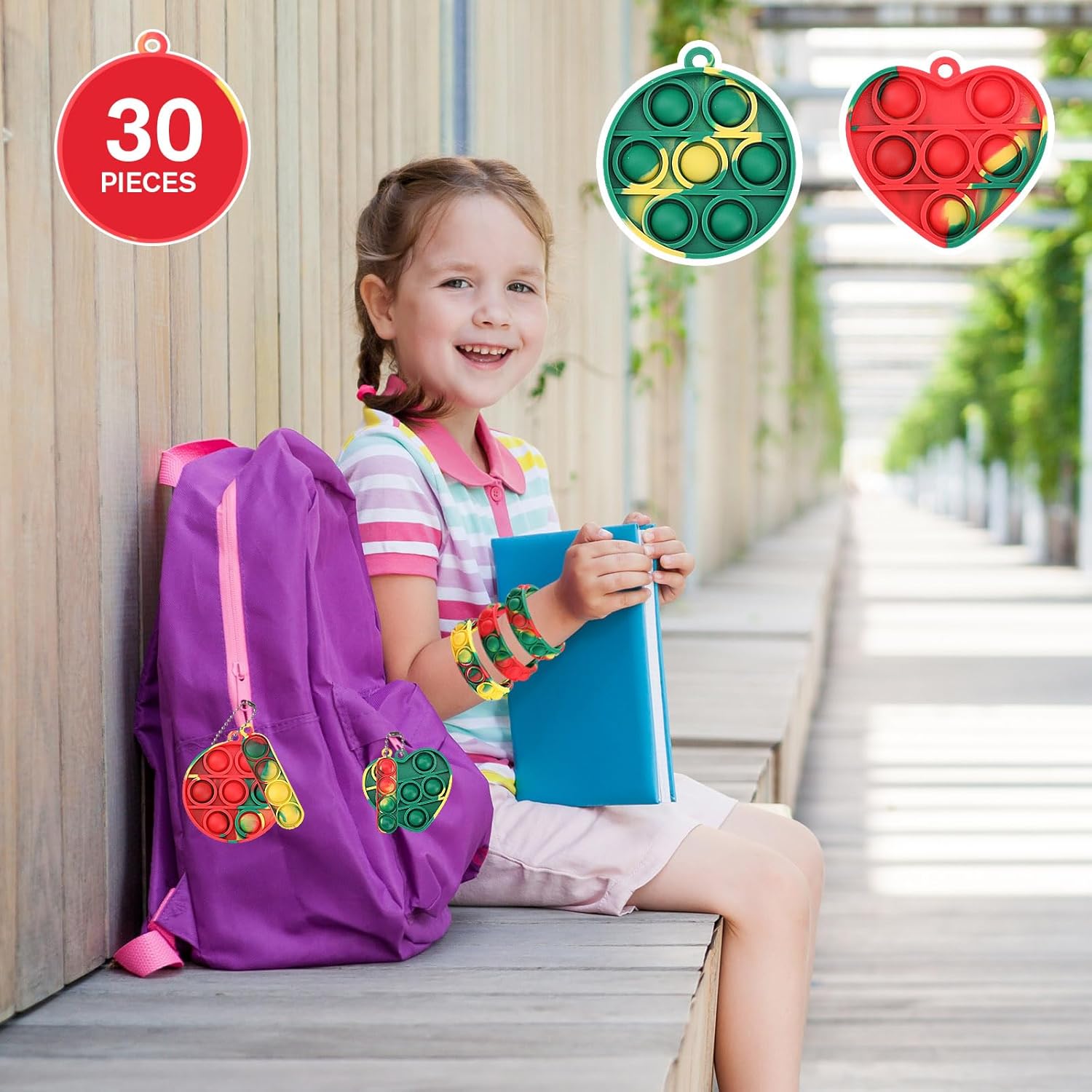 Christmas Party Favors, 30 Pcs Pop Fidget Toys Keychain Its for Kids Adults, Mini Push Bubble Pops Bulk Sensory Toys, Birthday Gifts Classroom Prizes for Boys Girls Goodie Bag Treasure Chest Box