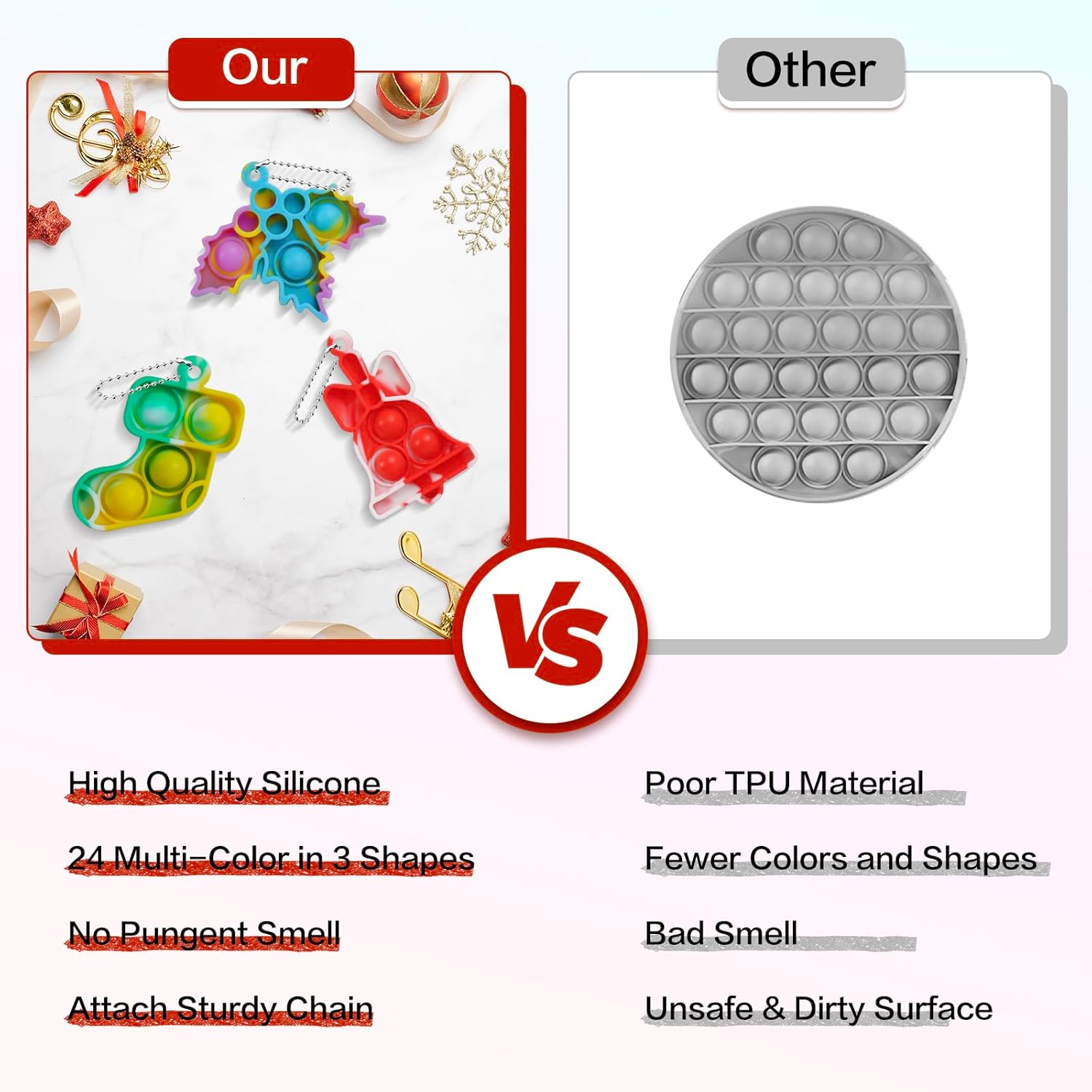 - Christmas Gifts - The 24pcs Christmas Push Pop Bubble Fidget Sensory Toys are perfect for kids, boys, girls, toddlers, christmas toys, christmas gifts, christmas party favors, stocking stuffers.