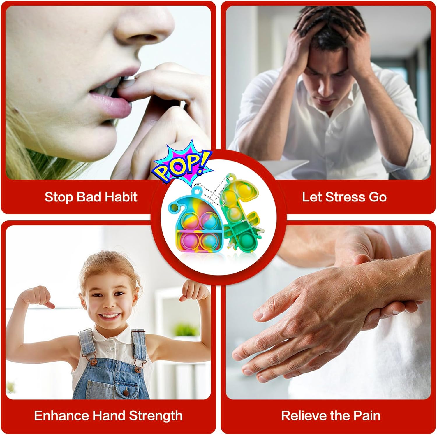 - Silicone Material - Christmas Mini pop keychain Made of high quality environment-friendly silicone material, it's durable, non-toxic,Have a good guarantee for kid's safety, safe for everyone to play.