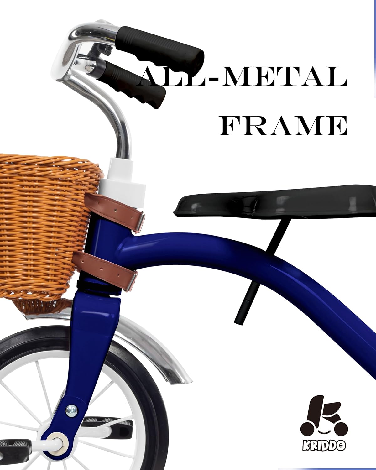 KRIDDO Classic All Metal Toddler Trike, Gift for Boys and Girls Ages 2 to 4 Year Old, Tricycle for 1 to 3 Year Olds, Sturdy Rear Deck, Deluxe Steer and Ergonomics Grip, Indoor and Outdoor, Blue