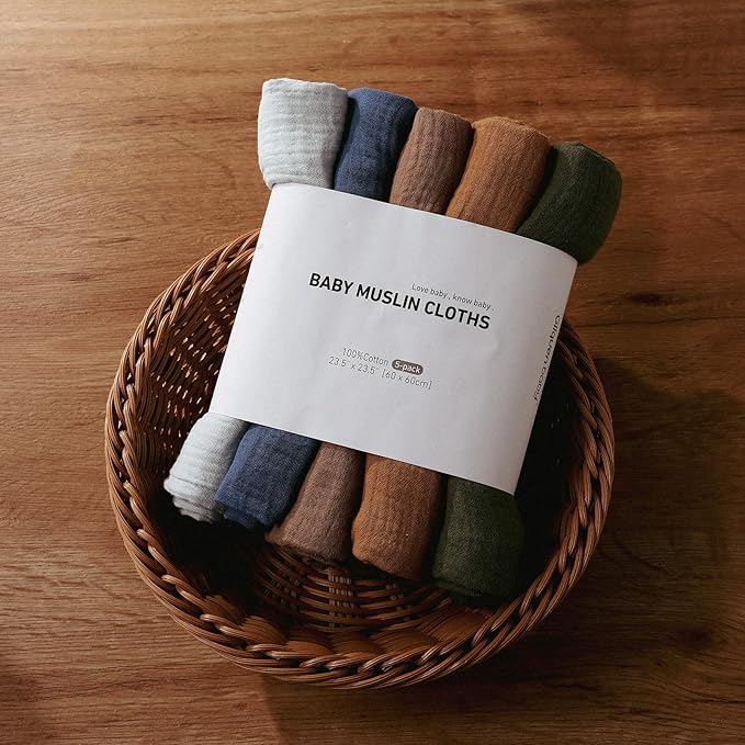 Muslin Receiving Blankets, Neutral Blanket Swaddling for Newborn Boys and Girls, 5 Pack Breathable and Skin-Friendly Swaddle Wrap for Infant Baby (Elegant Colors)