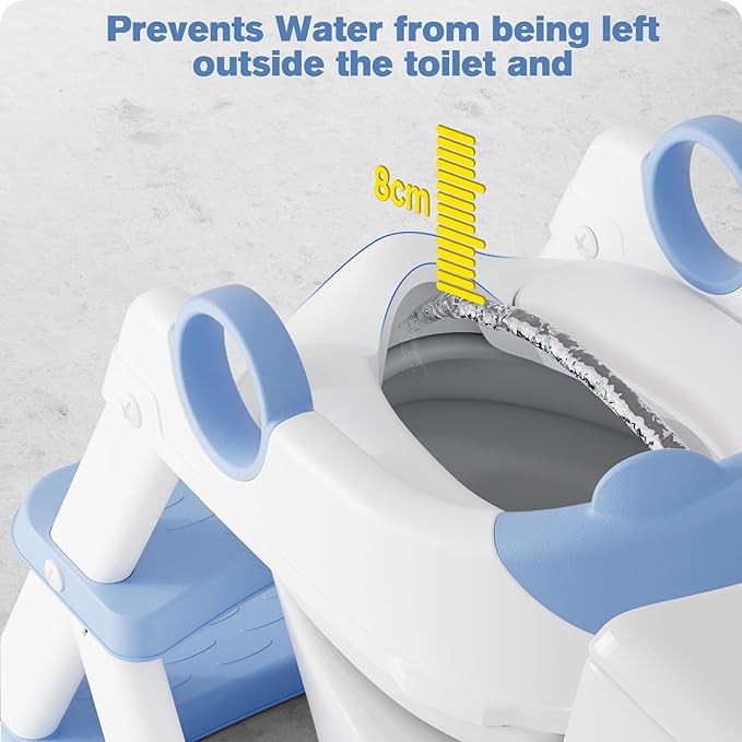 - Soft Cushion : Our potty training seat with step stool comes equipped with a waterproof PVC seat cushion that is soft to the touch, providing protection for children's sensitive skin. It also remains comfortable to use during winter months without feeling cold.