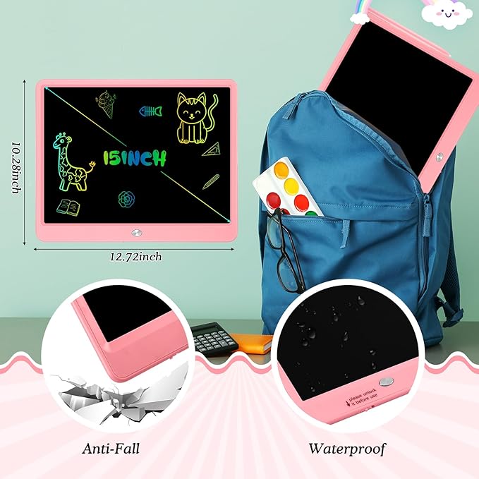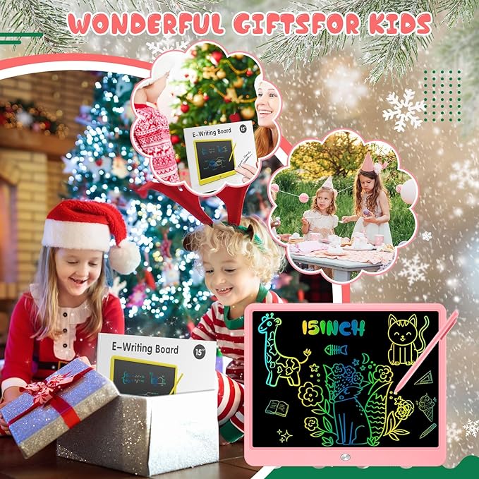 Decute Kids Toys LCD Writing Tablet with Stylus, 15 Inch Erasable Toddlers Doodle Board, Reusable Drawing Pad for Kids, Educational Christmas Birthday Gift for 3 4 5 6 7 8 Girls Boys Toddler Pink