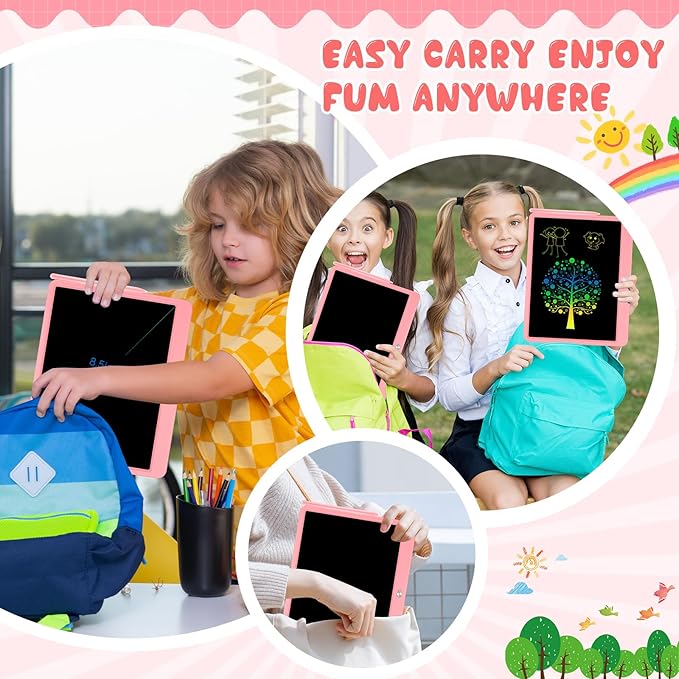 - The shell of the doodle tablet using premium ABS material, also adds a rounded corner design with excellent shock and drop resistance,The drawing tablet weighs only 200 grams , hardly feel the weight of the toys for 5 year old boys,easy to be placed in school bags, handbags or any other small bags. Play with this kids drawing pad anywhere.