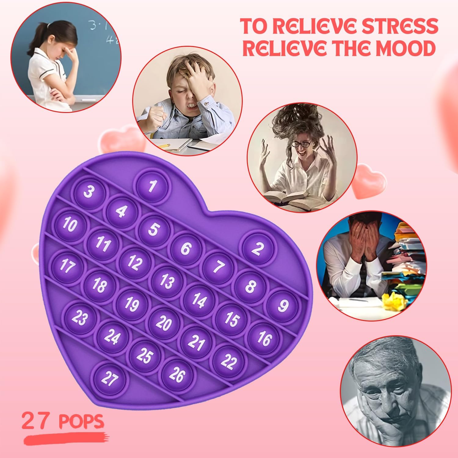 Purple Heart Shaped Pop Bubble Valentines Fidget Toy with Letters and Numbers, Xmas Gift Sensory Toy with Alphabets Kids Birthday Party Classroom Prize Stress Reliever